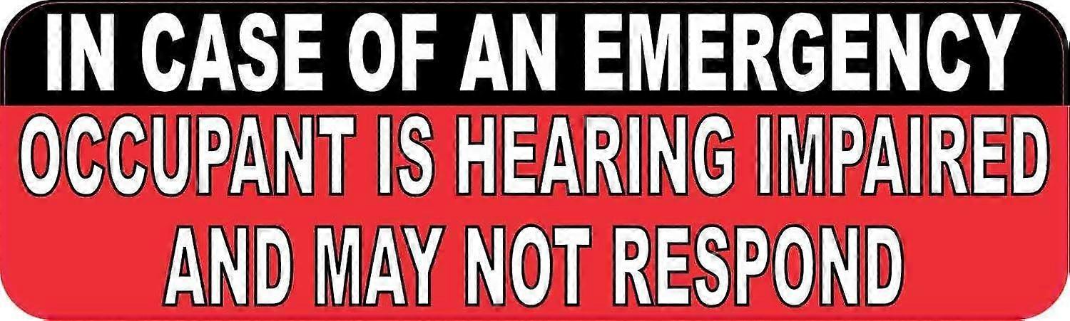Occupant is Hearing Impaired Vinyl Sticker, 10 inches by 3 inches red 10x3 inches