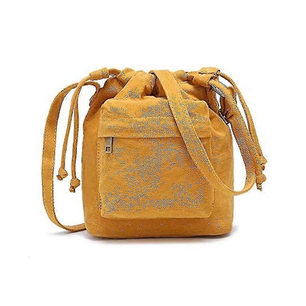 Drawstring Bucket Purse For Women Cute Little Canvas Crossbody Bag(yellow)