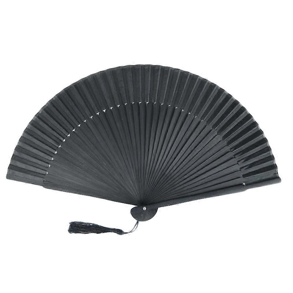 Men Black Foldable Fan Black Bamboo Bone Gentleman Elegant Handheld Fabric Fan Chinese Style Folding Fan (One Fan + One PP Bag)