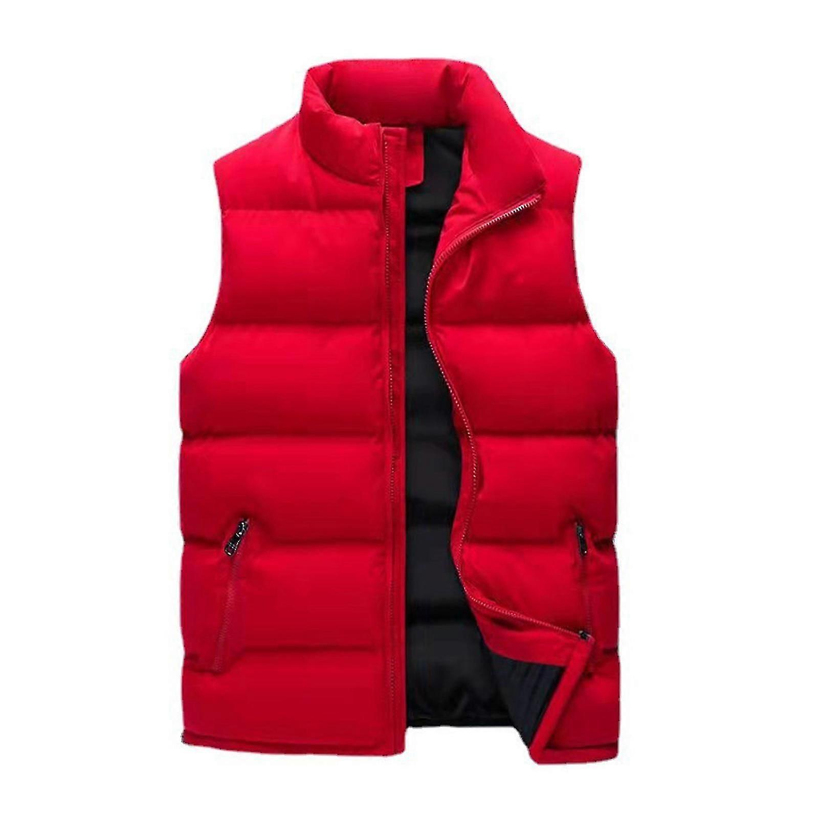 Men Autumn Winter Solid Color Vest Coat Stand Collar Sleeveless Water-resistant Outdoor Zipper Placket Puffer Waistcoat