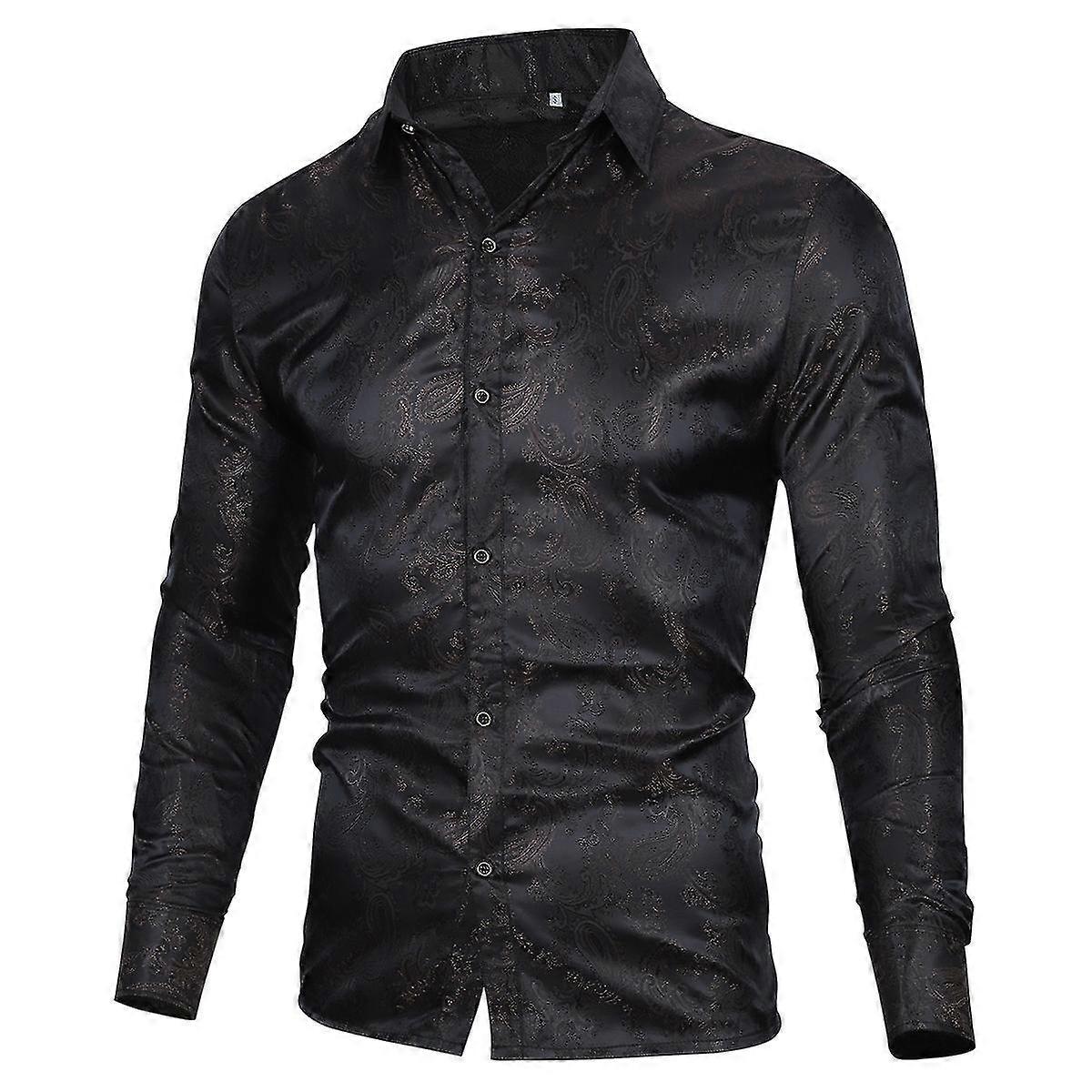 Men's Cashew Flower Embroidery Pattern Lapel Long Sleeve Shirt