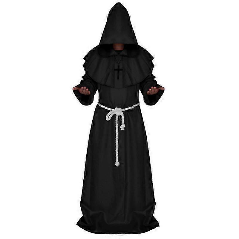 Adult Men Monk Hooded Robe Cloak Cape Friar Medieval Renaissance Priest Cosplay Performance Costume Halloween Carnival Party Fancy Dress Up Outfit