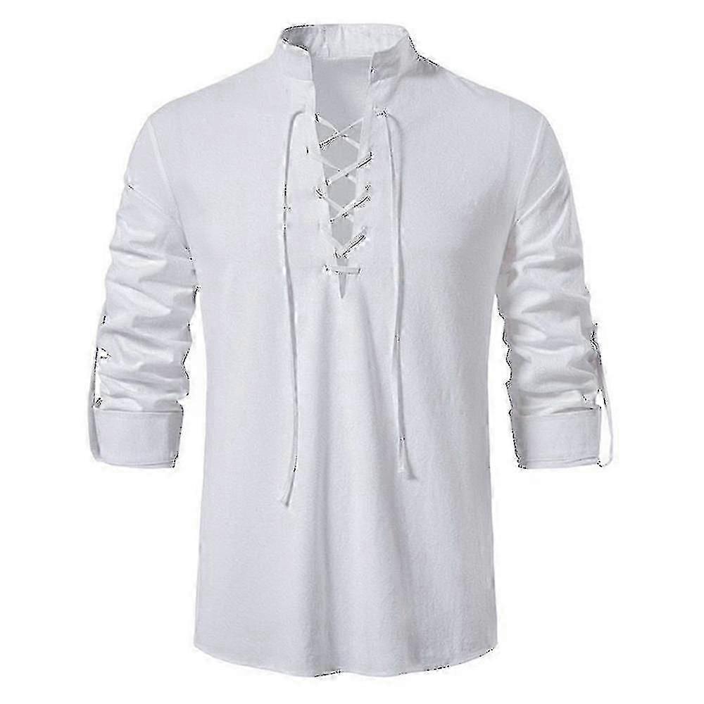 Men's Vintage Style Lace Up Long Sleeve Drawstring V-neck Lace Up Shirts Tops For Medieval, Renaissance, Viking Pirate, Hippie Costume Dress Up High Q