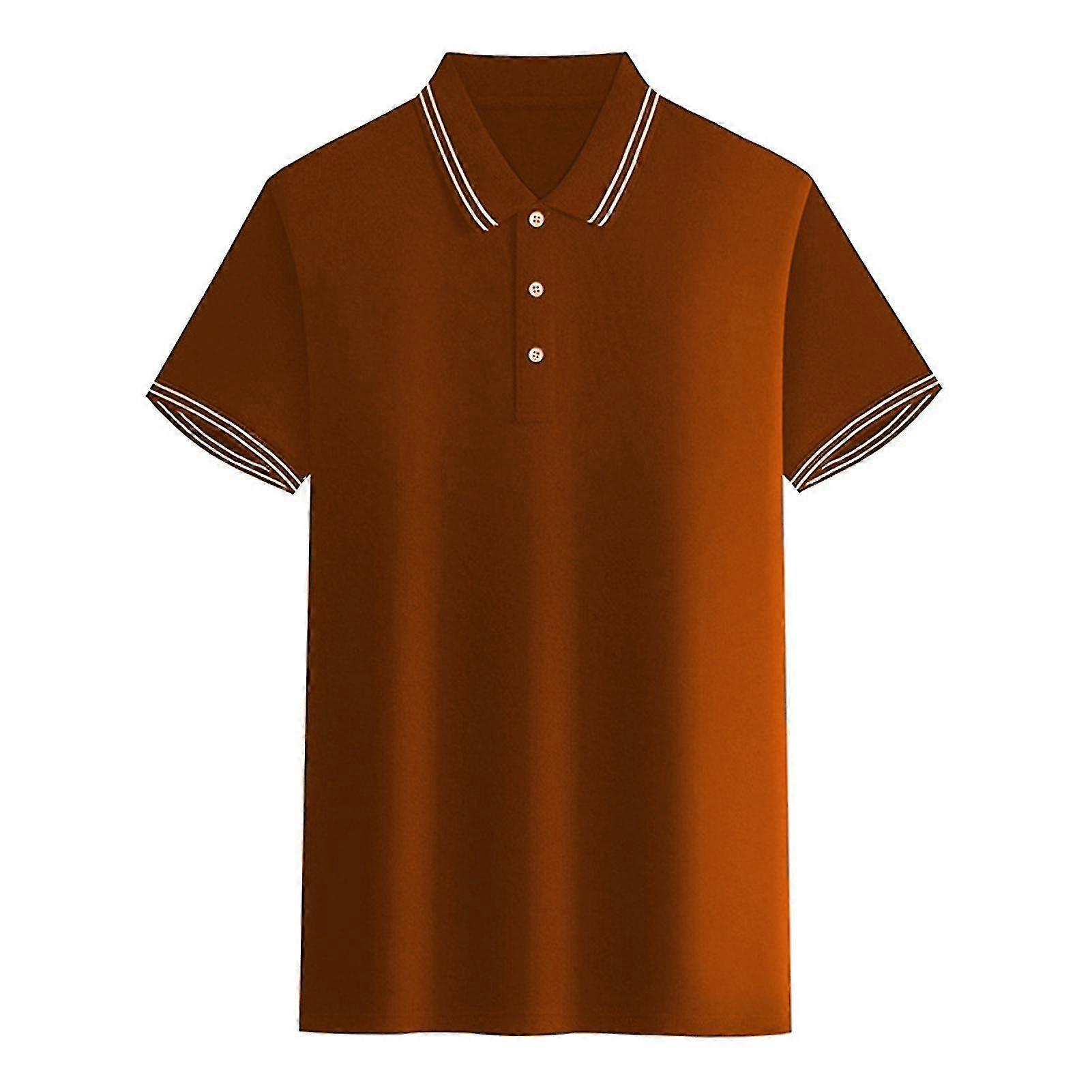 Men's Short Sleeve Shirts Stripes Printed Collar And Sleeves Tops Clothing For Summer#brown