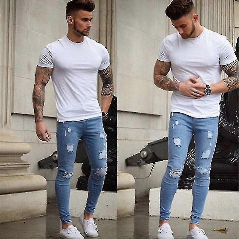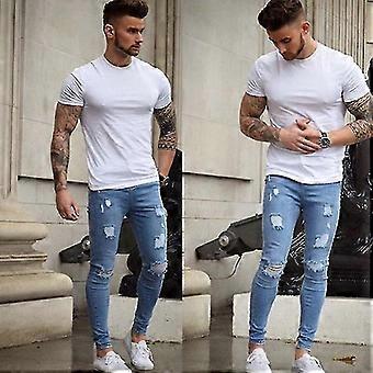 Men Ripped Denim Trousers Super Stretch Skinny Destroyed Slim Fit Jeans Pants Bottoms