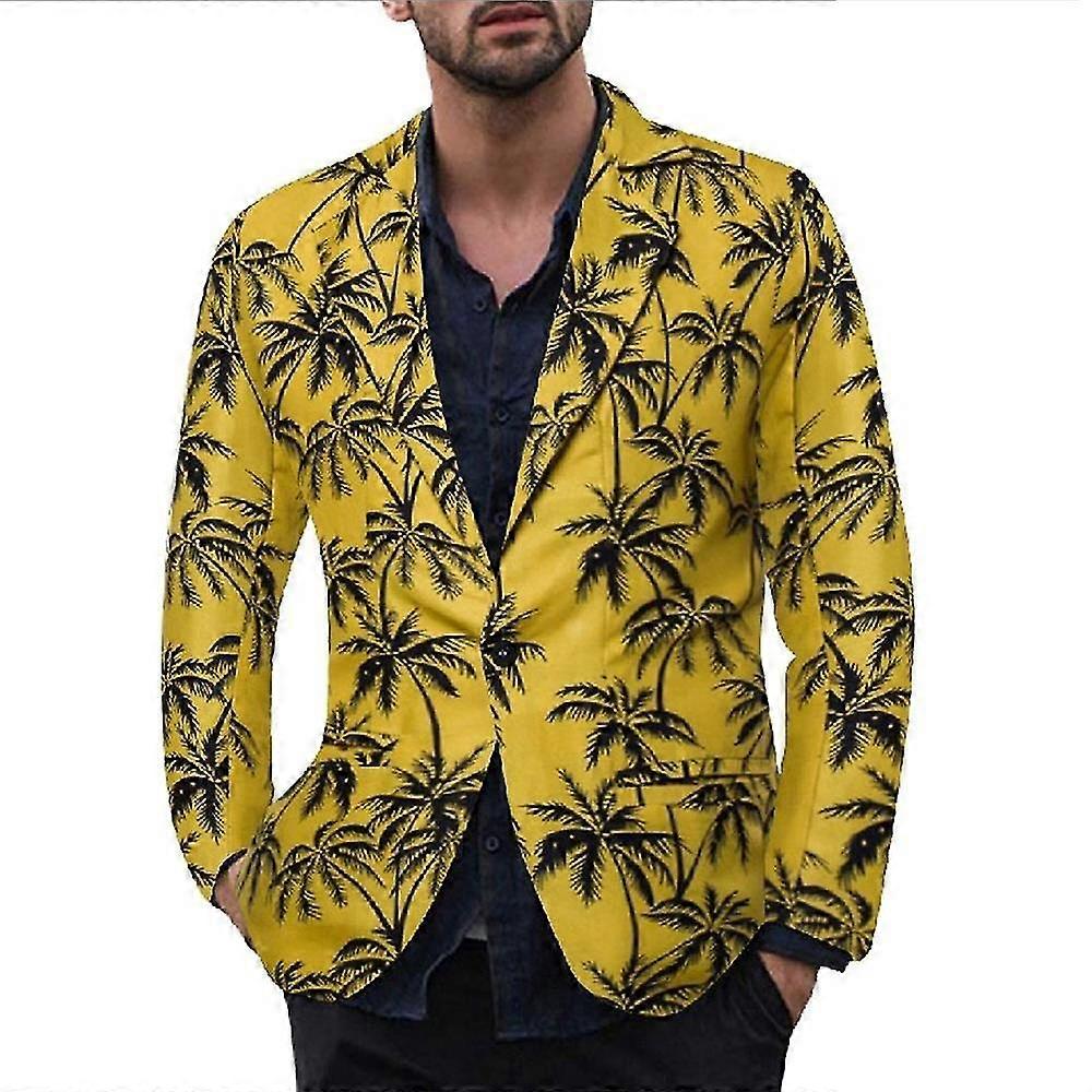 Men Hawaiian Resort Style Floral Printed Single Suit Jacket Coat Tops