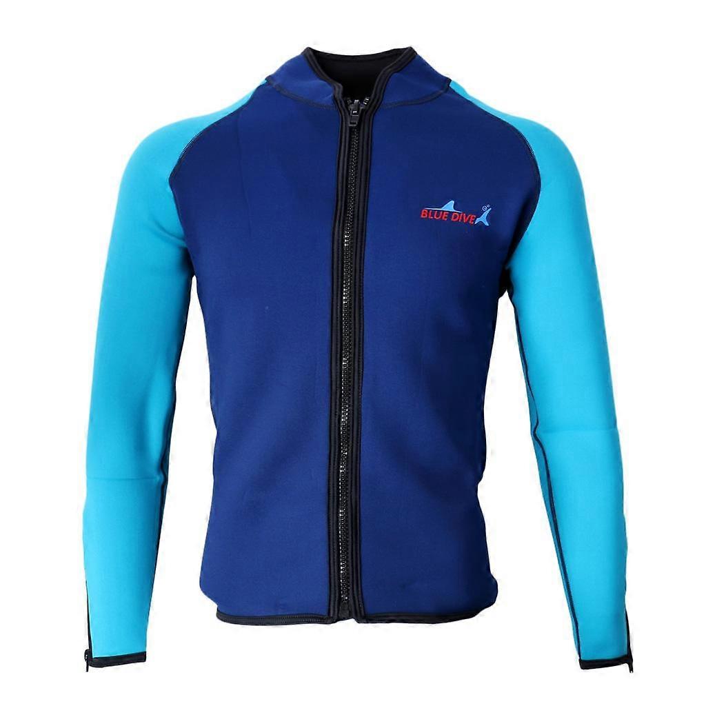 Men 2mm Neoprene Long Sleeve Full Zipper Wetsuits Jacket Diving Swim Surf Tops - Black S, S