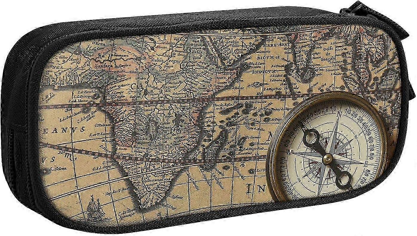 Retro Map Compass Pencil Case Large Capacity for Women Men Pen Pouch Pencil Box Double Zipper Stationery Bag with Compartments17395