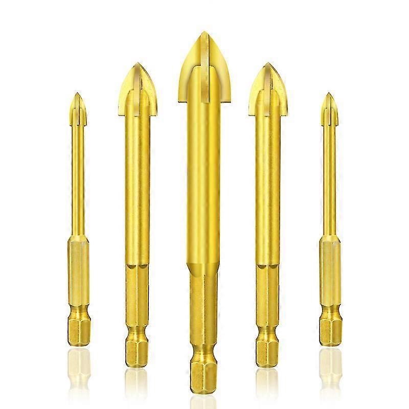 Glass, Ceramic, Tile, Crystal Tungsten Steel Drill Bits With Hex Shank, Titanium Coating, 3mm, 4mm, 5mm, 6mm, 7mm Set Of 5 (gold)