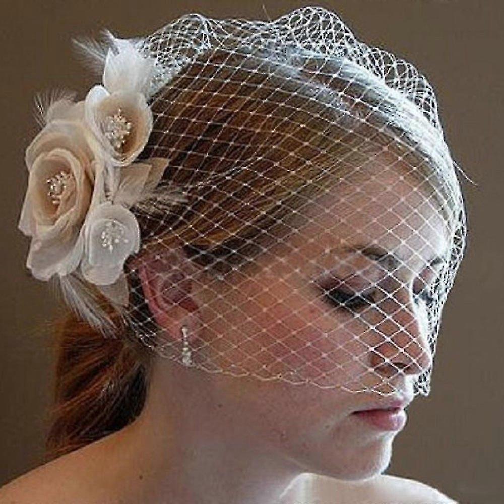 Wedding Bride Flower Face Birdcage Single Layer Lace Champagne White Veil Sling Hair Comb Church Ball Halloween Custom Hair Accessories