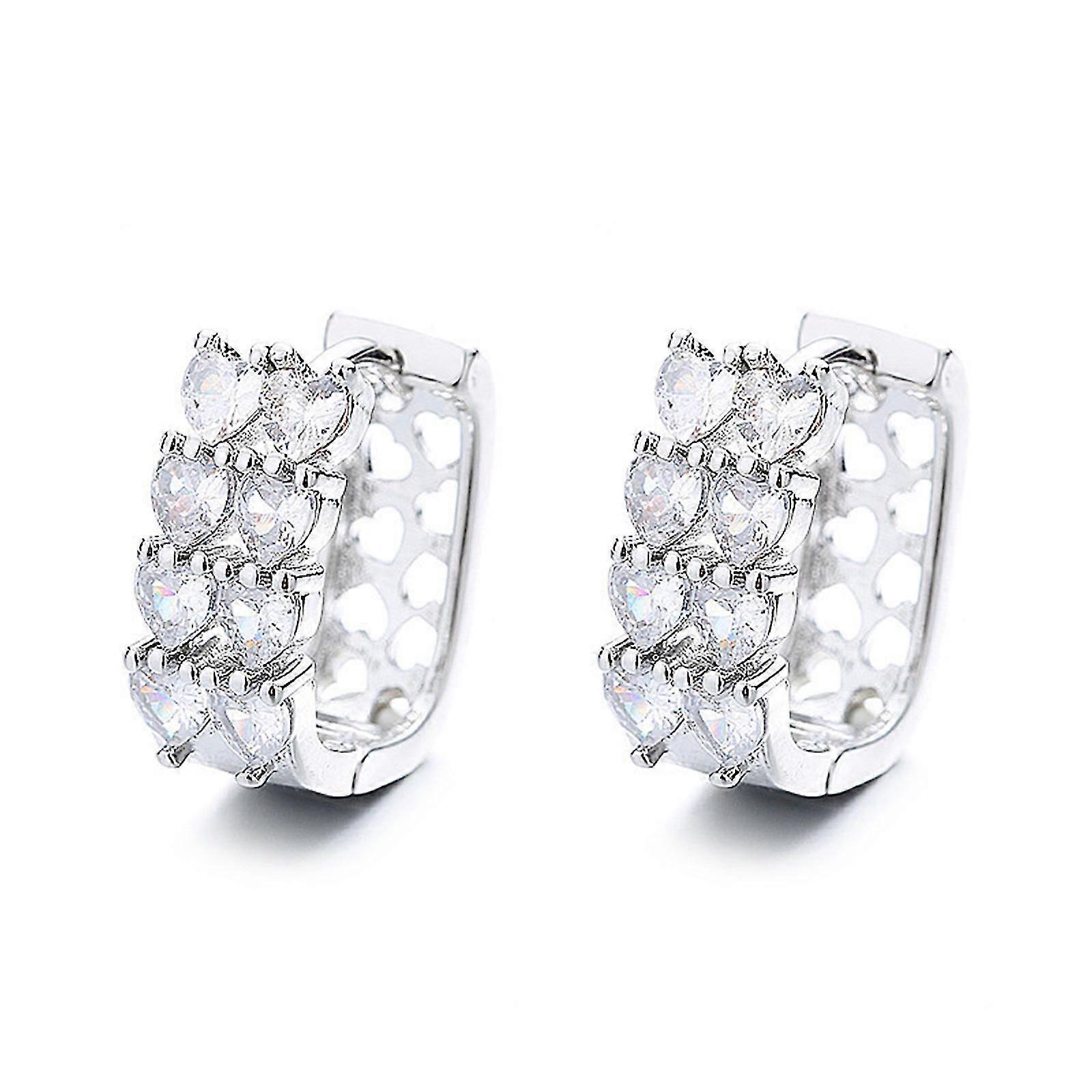 Bridal Hollow Heart Shape Earring Double Row Cubic Piercing Earring Jewelry