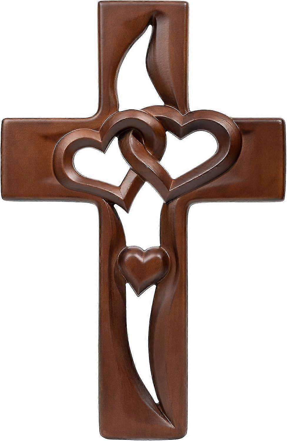 Marriage Cross for Wall Love Wall Decor, 10 Inch Handmade Wooden Intertwined Heart Wall Cross for Wedding Valentine Christmas Gift