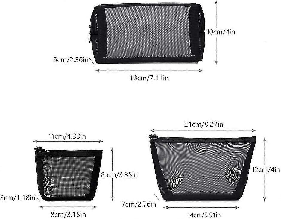 Travel Toiletry Bag Set Of 3 Portable, Mesh Toiletry Bag Slightly Transparent, Cosmetic Bag Zipper M