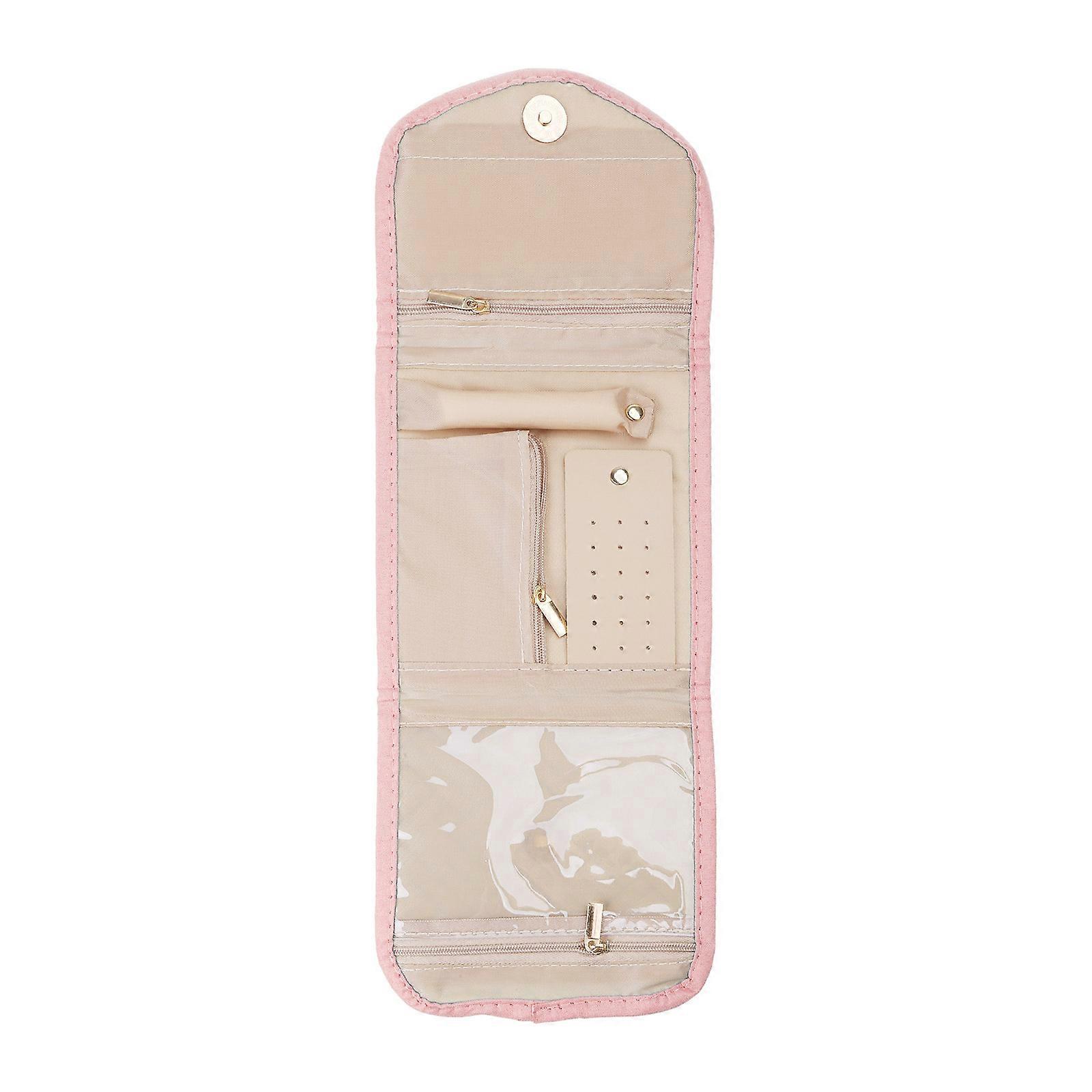 Travel-Hanging Jewelry Organizer-Case Foldable Jewelry Roll with Hole for Journey-Ring Necklace Bracelet Earring Storage Pink