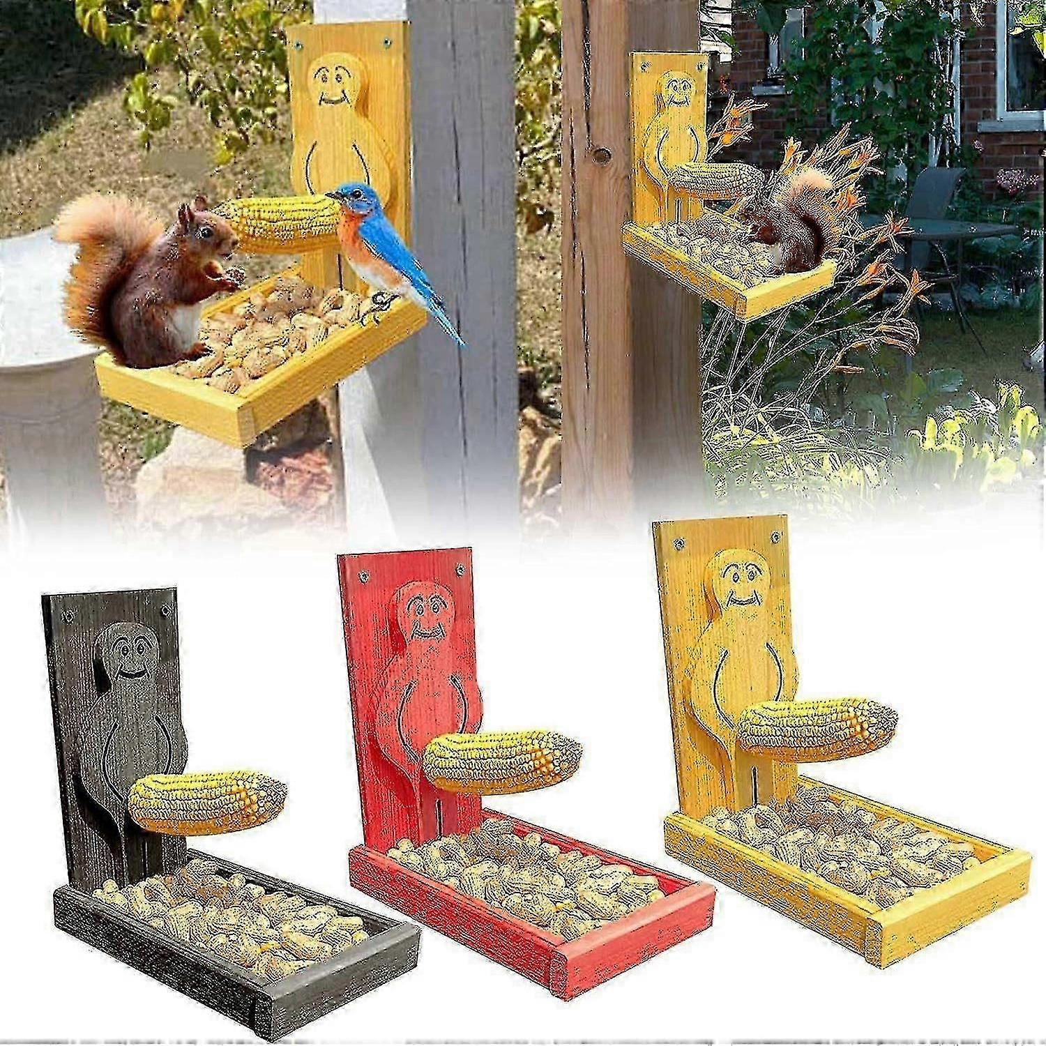 Squirrels Corn Cob Feeder, Funny Proud Man Wooden Outdoor Squirrels Feeder, Creative Corn Holder Bird Squirrel Feeding Station for Garden Yard Decor