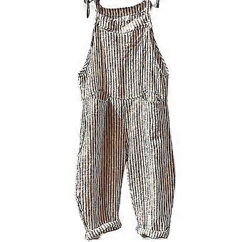 Women's Ladies Summer Striped Casual Loose Long Bib Overalls Pants Wide Leg Jumpsuits Baggy Rompers Trousers With Pockets - MXBC