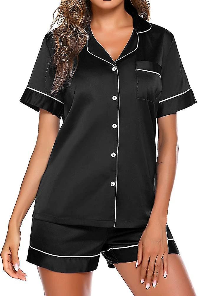 Ladies Pyjamas - Satin Pyjama Sets For Women 2pcs Silk Short Sleeve Button Down Gift