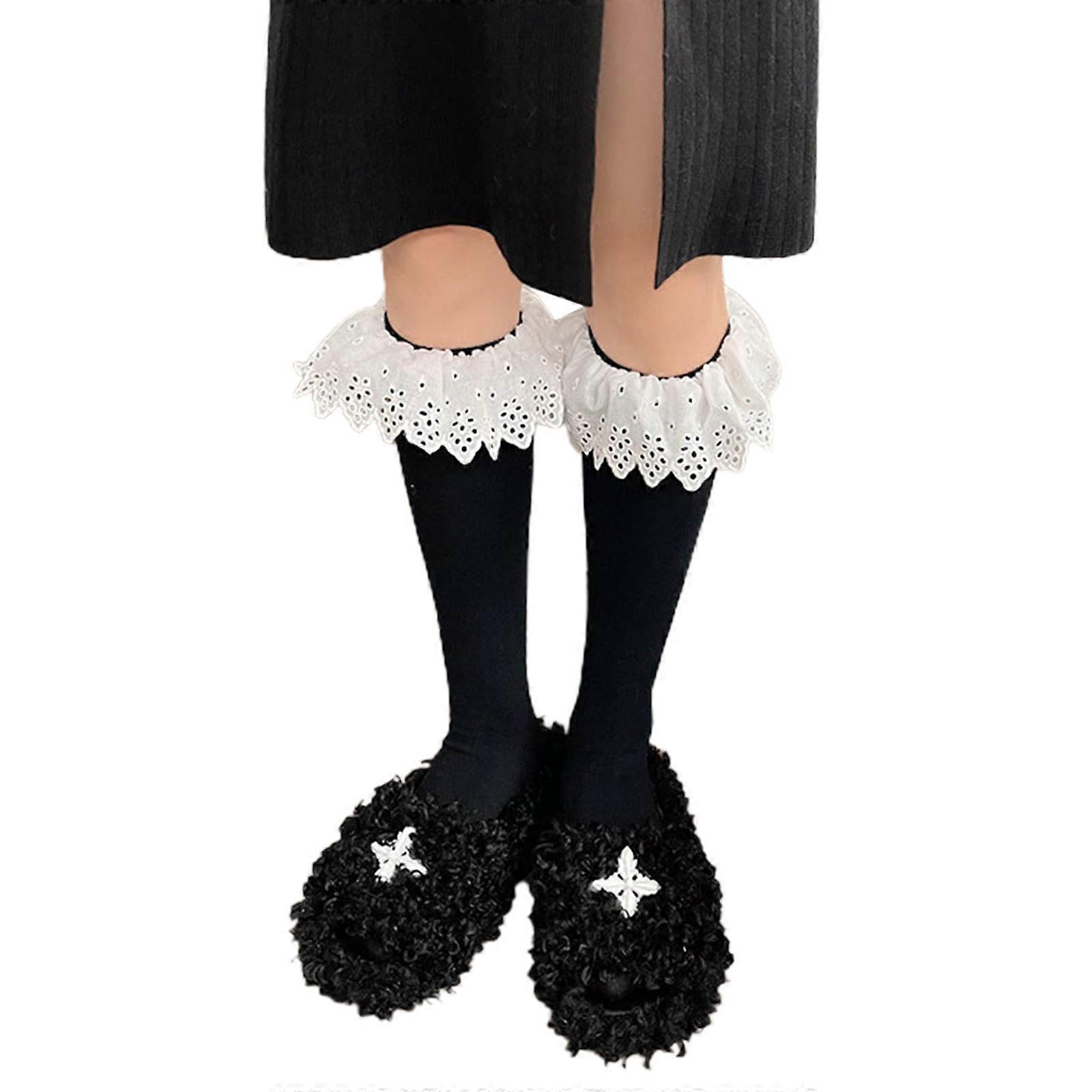 Delicate Women Girls Breathable Calf Socks Summer Calf Socks Pleated Trim Stocking Antiskid Under Dress Mid-Calf Sock Black One Size