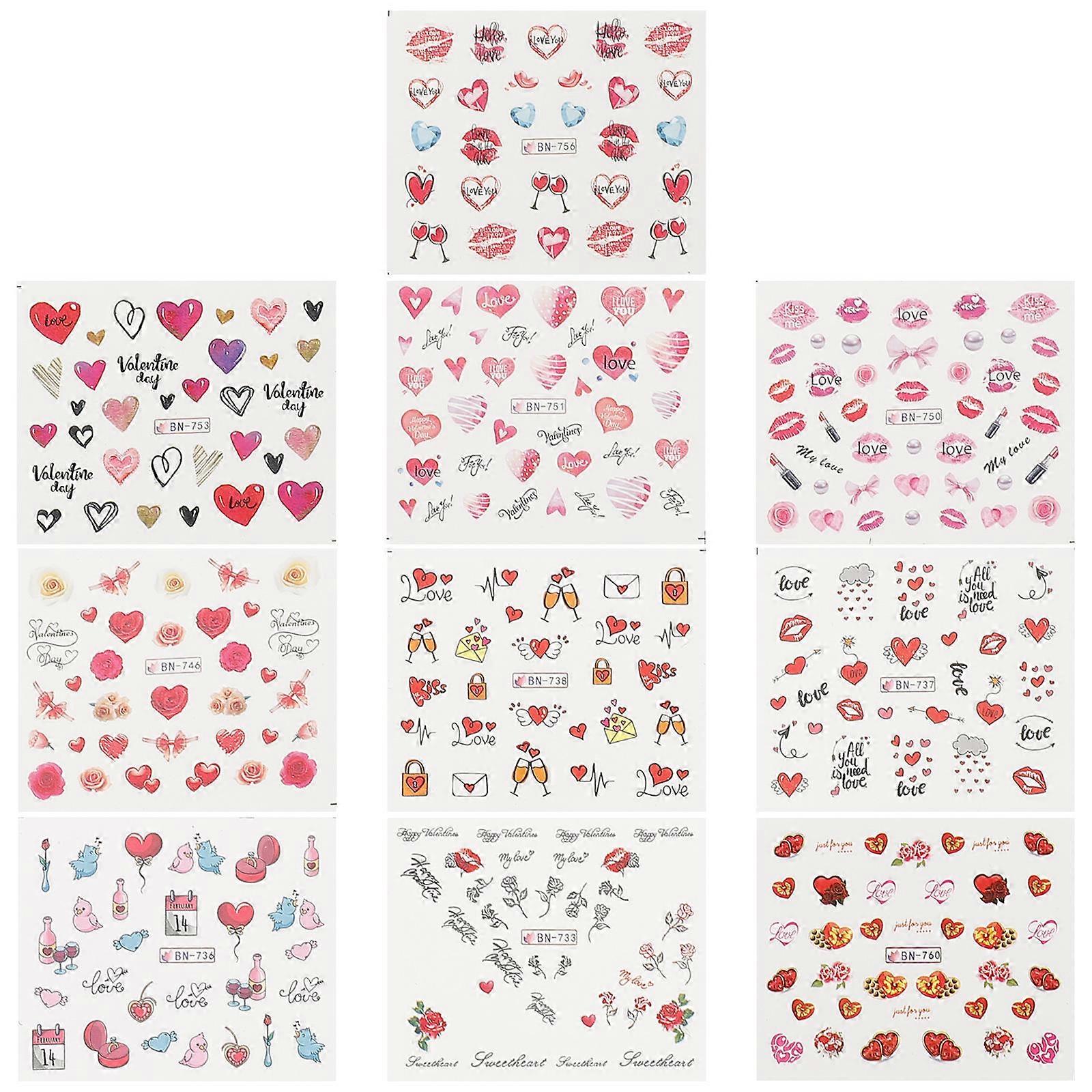Nail Decals Valentines Day Stamping Plates for Women and Girls Assorted Color No Glue Required 10Set