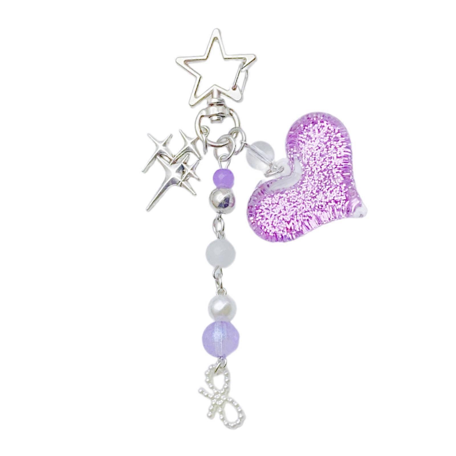 Youthful Inspire Love Heart Keychain Sturdy Resin Key Holder Accessory with Beads Portable for Everyday Outfits Purple