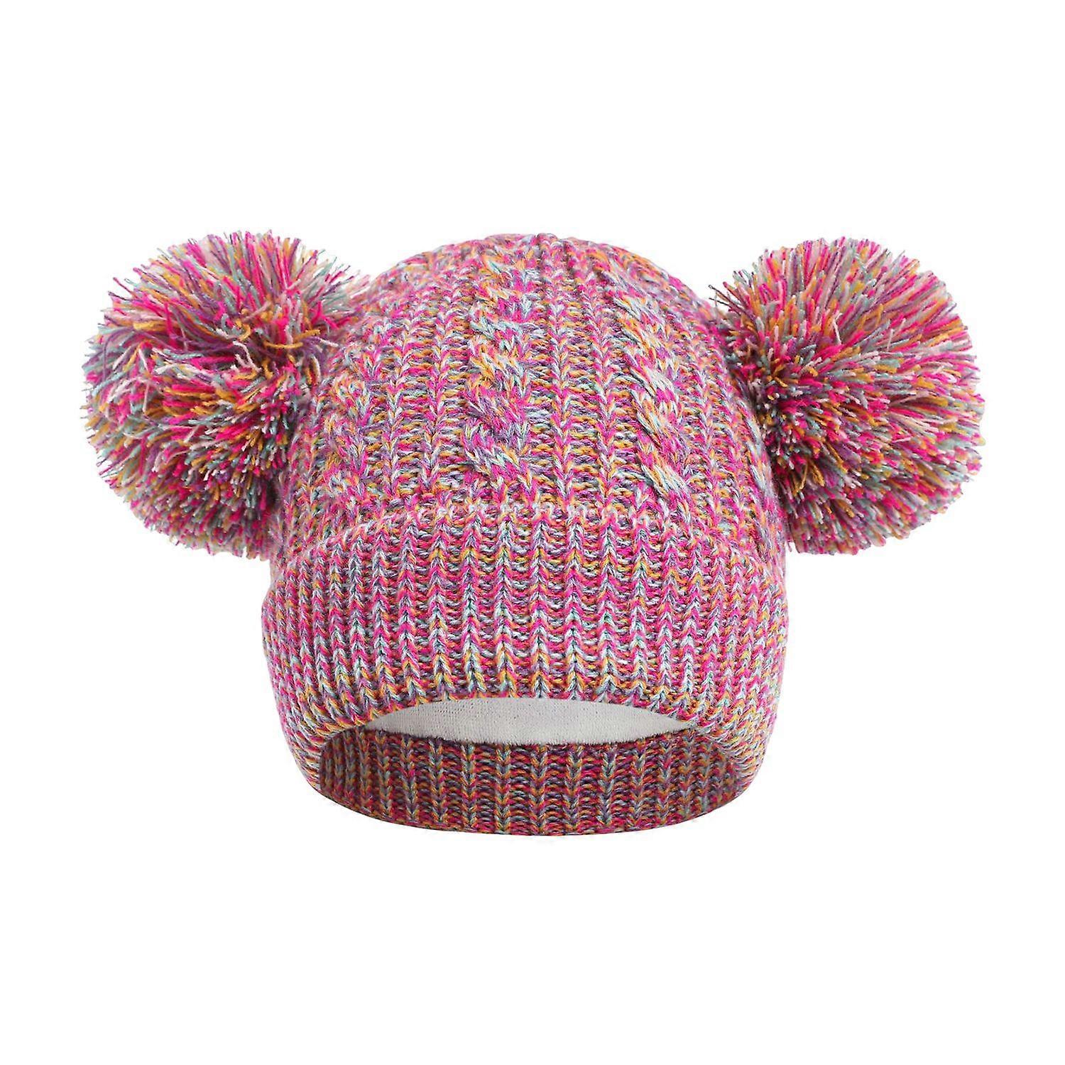 Winter Children Hat Plush Ball Decor Thick Warm Knitted Elastic Anti-slip Unisex Ear Protection Boys