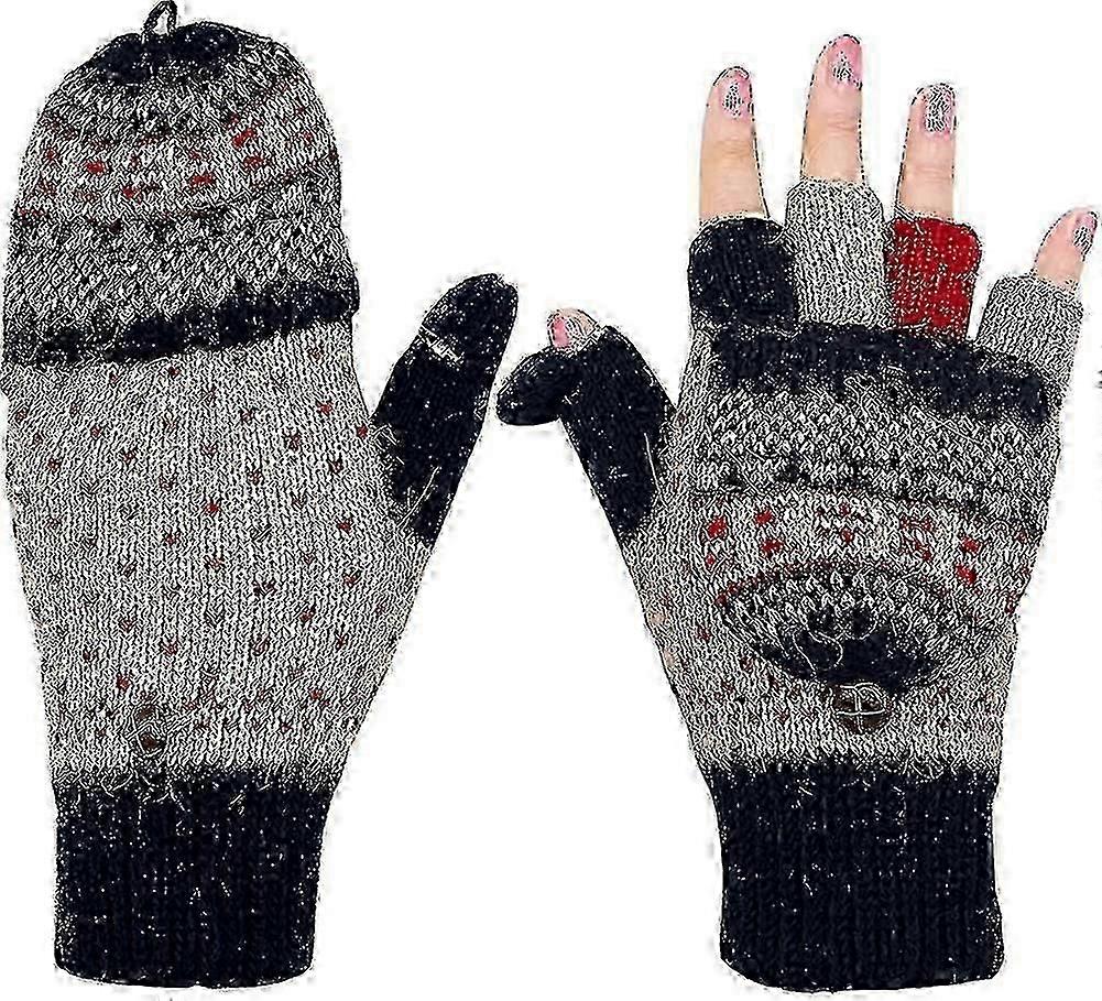 Winter Fingerless Gloves For Women Warm Wool Knitted Convertible Ladies