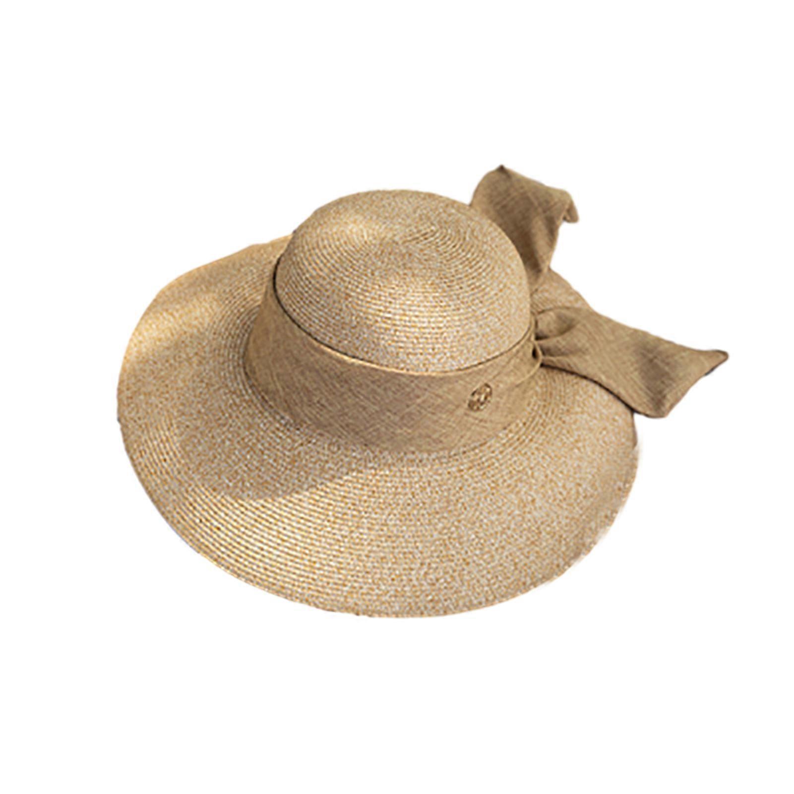 Ribbon Bowknot Decor Sun Hat Round Dome Folding Thin Anti-UV Women Big Brim Sunscreen Straw Hat Fashion Accessories
