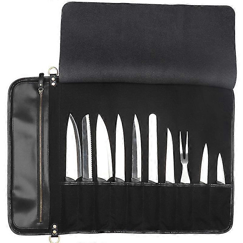 Chef Knife Roll Bag Durable Knife Carrier Stores 10 Knives Plus Zipper For Culinary Tools Portable Chef Knife Case Many Slots, Shoulde