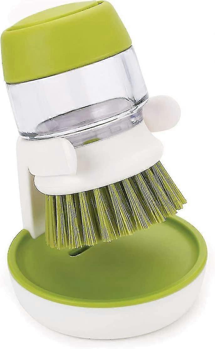 Soap Dispensing Palm Scrub Brush With Drip Tray, Washing Brush For Dishes Pots Pans Sink