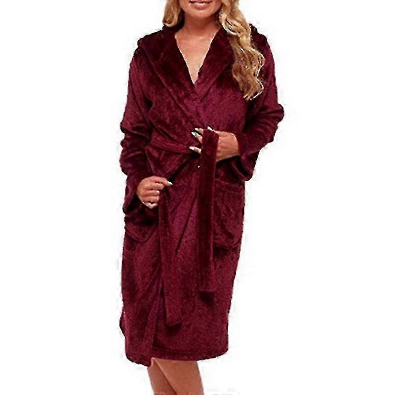 Fleece Bathrobe Women Dressing Gown Hooded Towling Bath Robe Nightwear