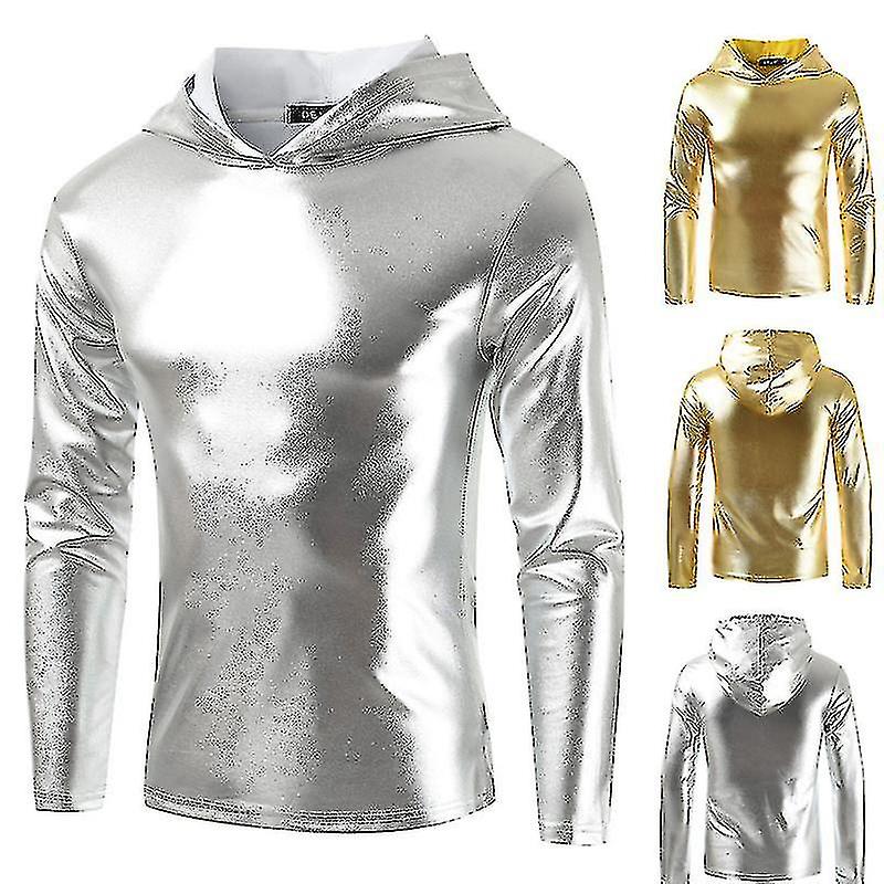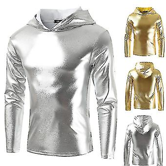 Summer Men's Long-sleeved Hooded Shiny Men's T-shirt Nightclub Hooded