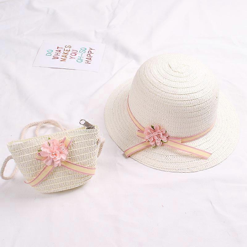 Summer Baby Flower Breathable Hat Straw Hat With Handbag Bags Kids Hat Boy Girls Sun Visor UV Protection Panama Hat Gorros