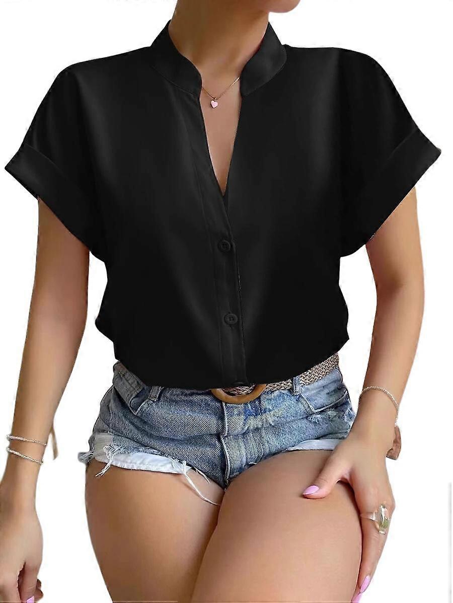 Summer Simple V-neck Ladies Shirt Fashion Tops Elegant Temperament Commuter Women Shirt