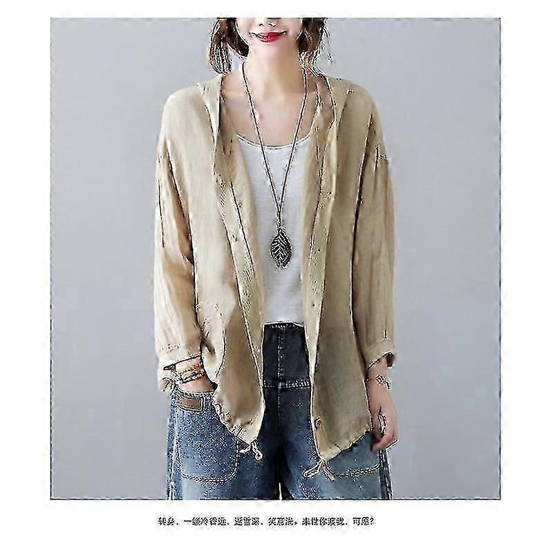 Summer Thin Retro Cotton Linen Cardigan Shirt Women\'s Loose Artistic Air Conditioning Shirts Sunscreen Blouse