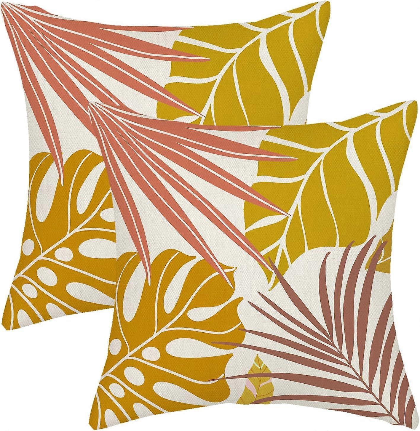 Summer Outdoor Pillow Covers 16x16 Coral Mustard Yellow Pink Palm Throw Pillows for Couch Tropical Leaf Pillowcase Fall Leaves Plant Decorative Cushio