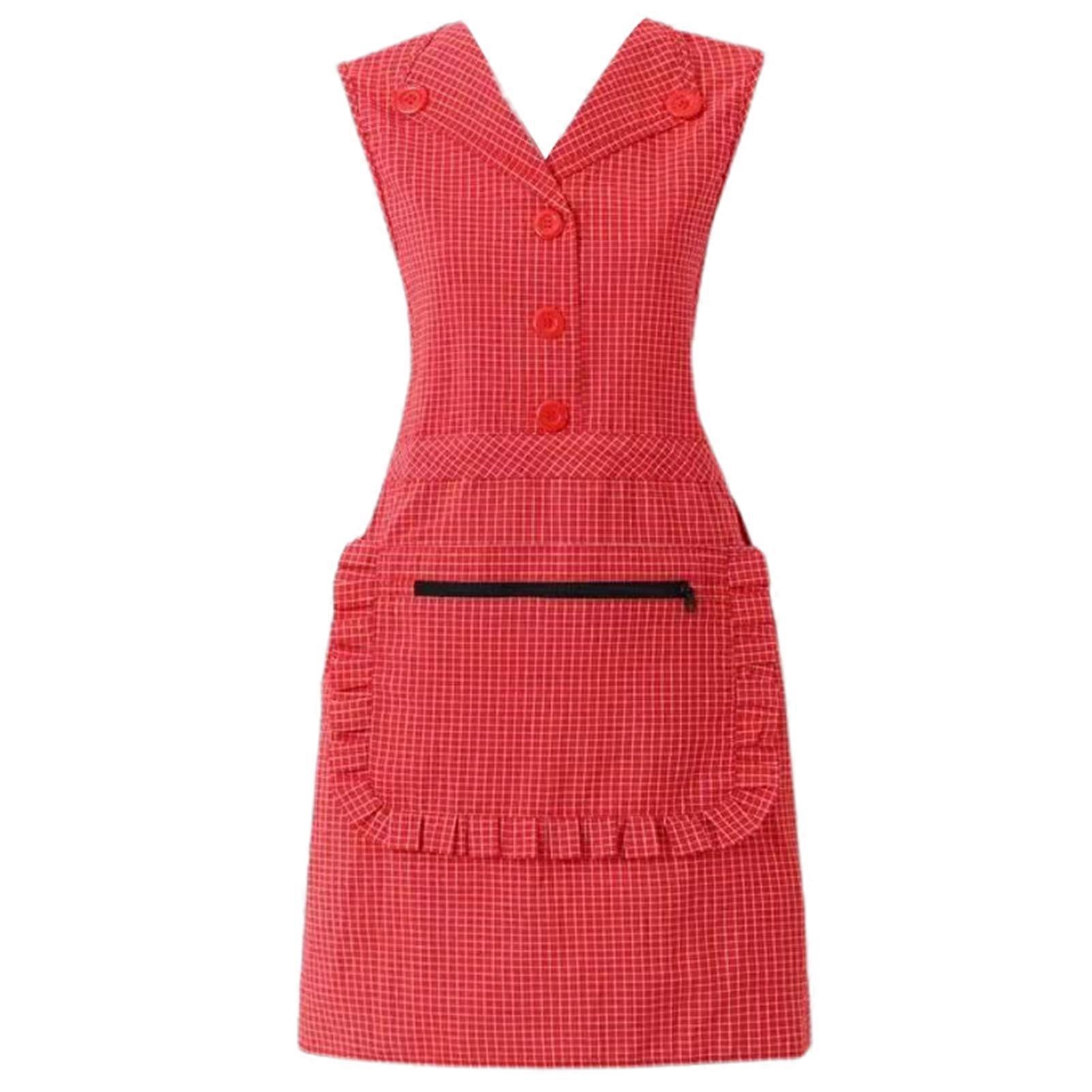 Cooking Apron Sleeveless Oil-proof Zipper Pocket Western Style Lapel Plaid Pattern Cotton Apron Waistcoat Housework Workwear Daily Use