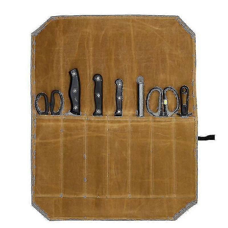 Professional Chefs Knife Roll, Waxed Canvas Roll Foldable Knife Culinary Bag Wrap, Kitchen Knives Holder Organiser, Utensils Wrap Bag, Travel (baifus)