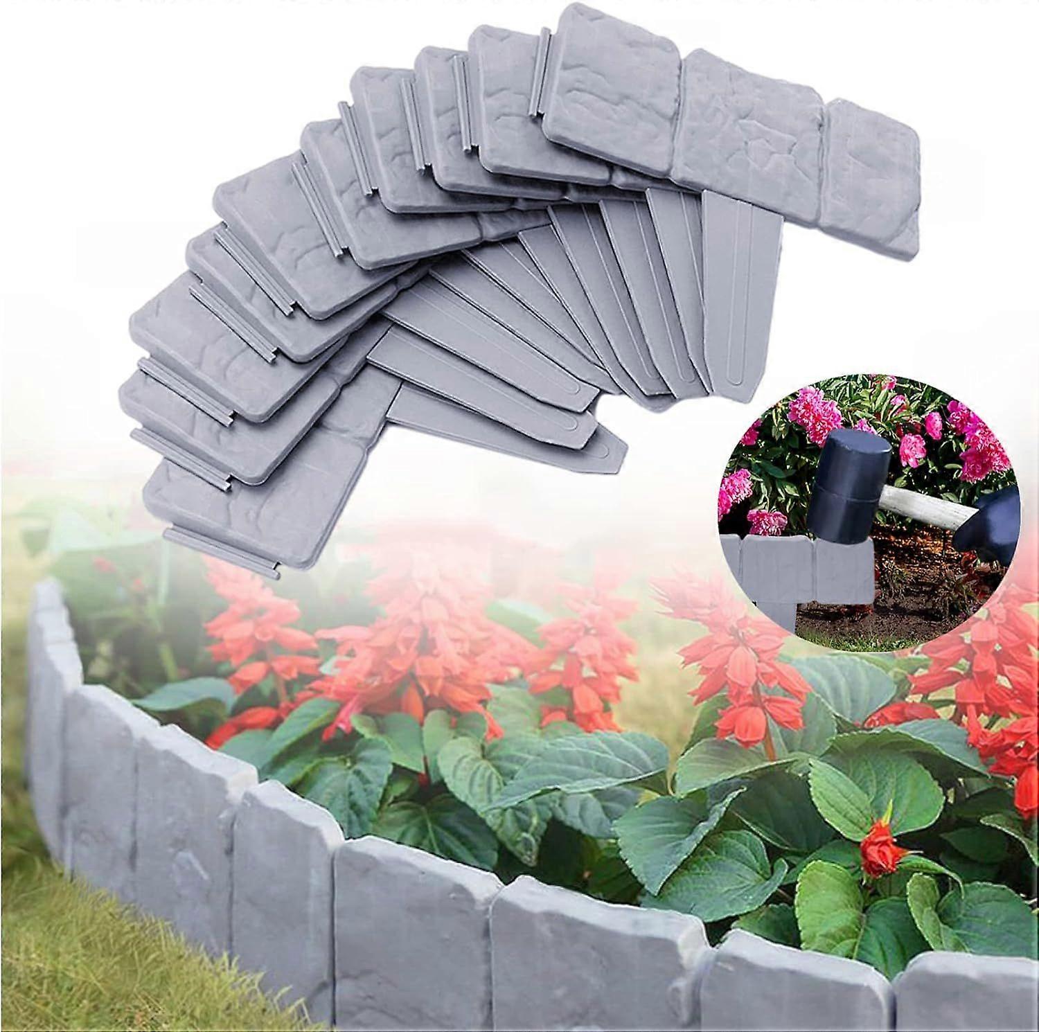 Lawn Edging Plastic Mowing Edging Plastic Edging Garden Lawn Edging Stones Border 24.5*23cm,20 Pieces (Gray)