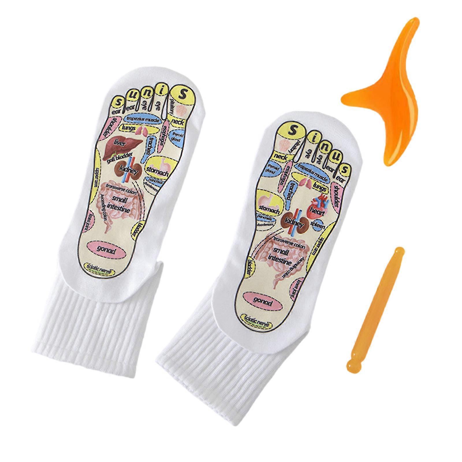 Acupressures Reflexology Cotton Socks Foot Massage Socks Relieve Tired Socks with Massage Tool Stick English Illustration