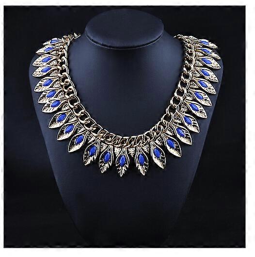 New European Big Brand Golden Leaf Zircon Exaggerated Short Necklace Woman Temperament Sweater Necklace