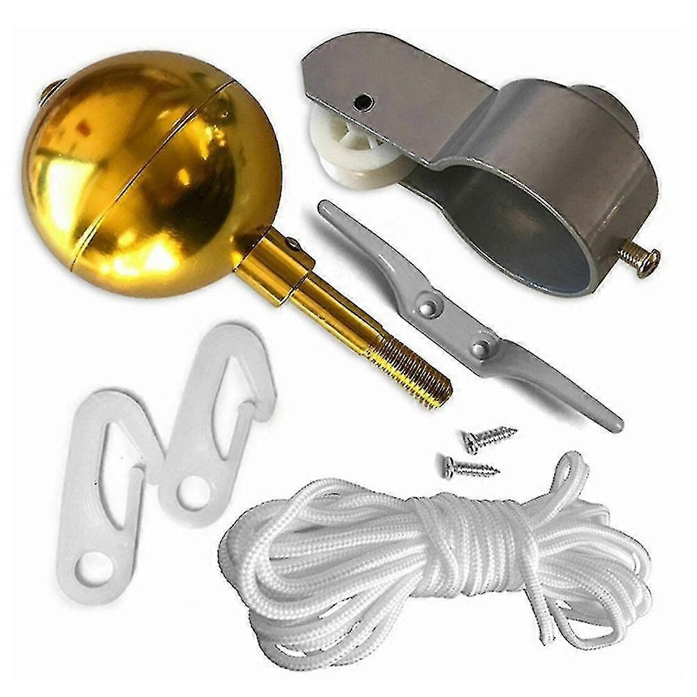 Flag Pole Parts Repair Kit 2''dia Truck Pulley Gold Ball Cleat Clip Halyard Rope