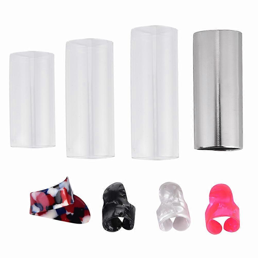 Guitar Stainless Steel Glass Slides Plastic Protective Finger Picks Set With Box