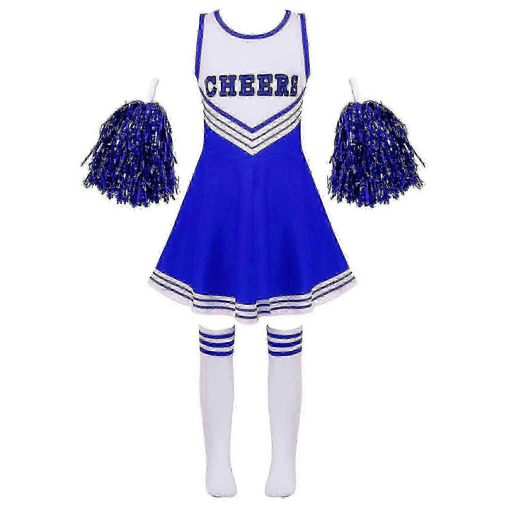 Girls Cheerleading Uniform Dance Costume Kids Cheerleader Outfit Round Neckline Patchwork Style Dance Dress Flower and Socks