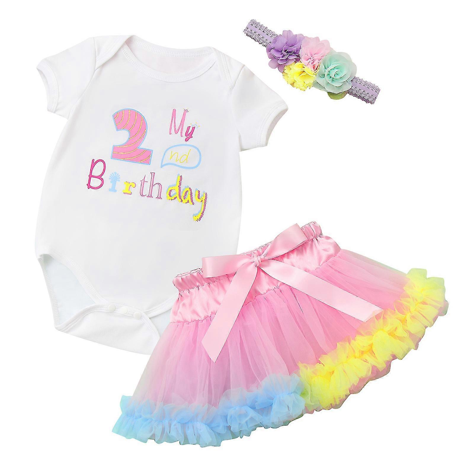 Infant Girls Summer Cute Outfit Short Sleeve Letter Print Romper with Tutu Skirt Headband for Baptism Birthday Party Photography