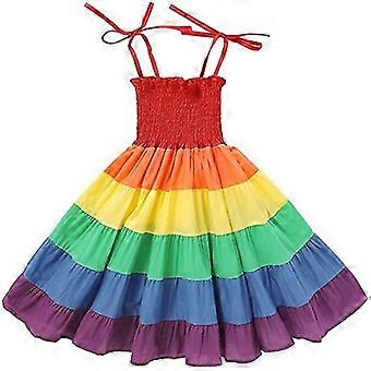 الفتيات قوس قزح فستان طفل الأميرة بلا أكمام هالتر بيتش