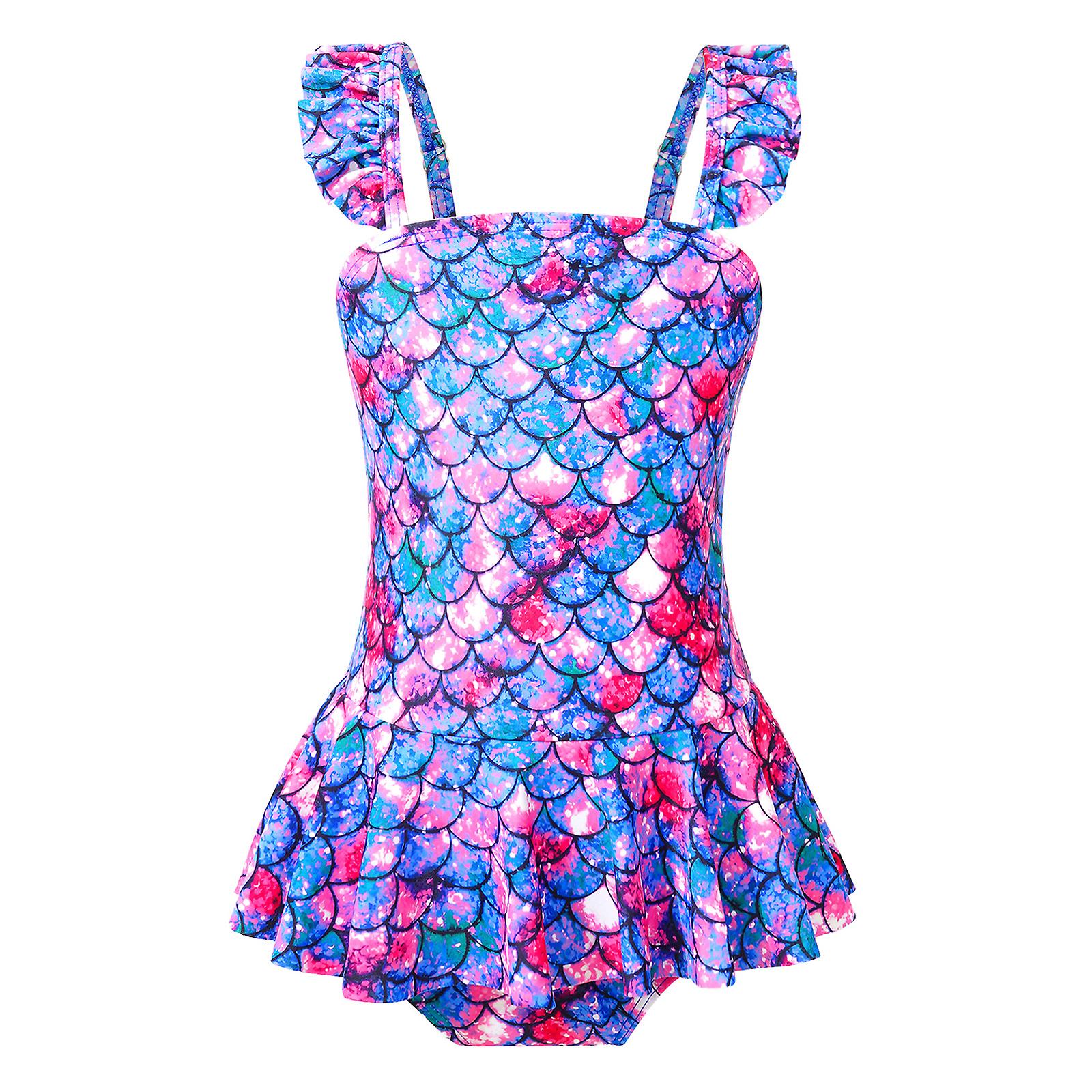 Girls Fish Scales Print One-piece Swimsuit Sleeveless Backless Bodysuit Sweimwear Surfing Pool Beach Hot Spring Bathing Suit