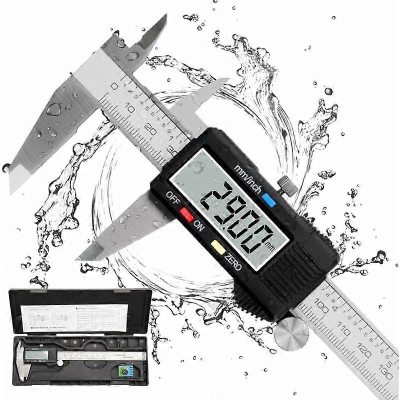 【Highest Quality Standard】Vernier caliper finely polished stainless steel frame with knurled roller and locking screw to ensure smoothness and precise position during use. Using hardened process, no rust, more durable, longer service life 【Precise Measurement】Digital caliper measures up to 6"/150mm with an accuracy of 0.01mm. This allows you to set zero and start a new measurement at any point on the scale and instantly convert between inches/millimeter with just the press of a button With 4 measuring functions, inner diameter, outer diameter, depth and scale 【Extra LCD display. wide】Digital caliper with a large, easy-to-read LCD screen that makes reading results clearer. Readings can be displayed in inch or millimeter format Dust and oil proof 【Versatility】This caliper. professional digital measures inside, outside, depth and pitch with two sets of jaws and the probe With the zero button, we can reset the value during measurement to have more flexibility of use 【Bonus】 Foot digital slider is equipped with an LR44, 1.5V button cell battery and is delivered with an additional button battery. This caliper is CE certified. Digital gauges equipped with an automatic on/off function, so your battery doesn't run out upon arrival. Home and professional use is strongly recommended
