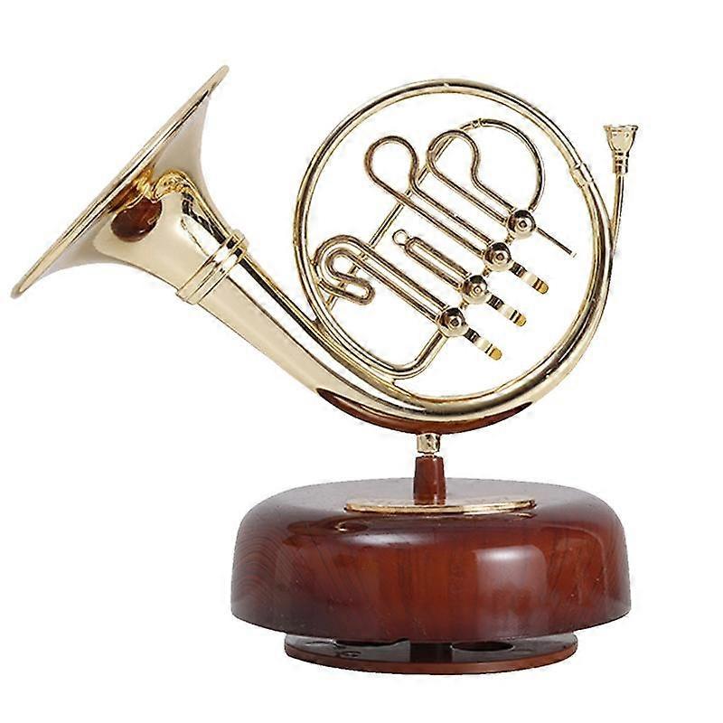French Horn Music Box Classical Wind Up Twirling Music Box Rotating Base Brass Wind Instrument Miniature Artware Gift