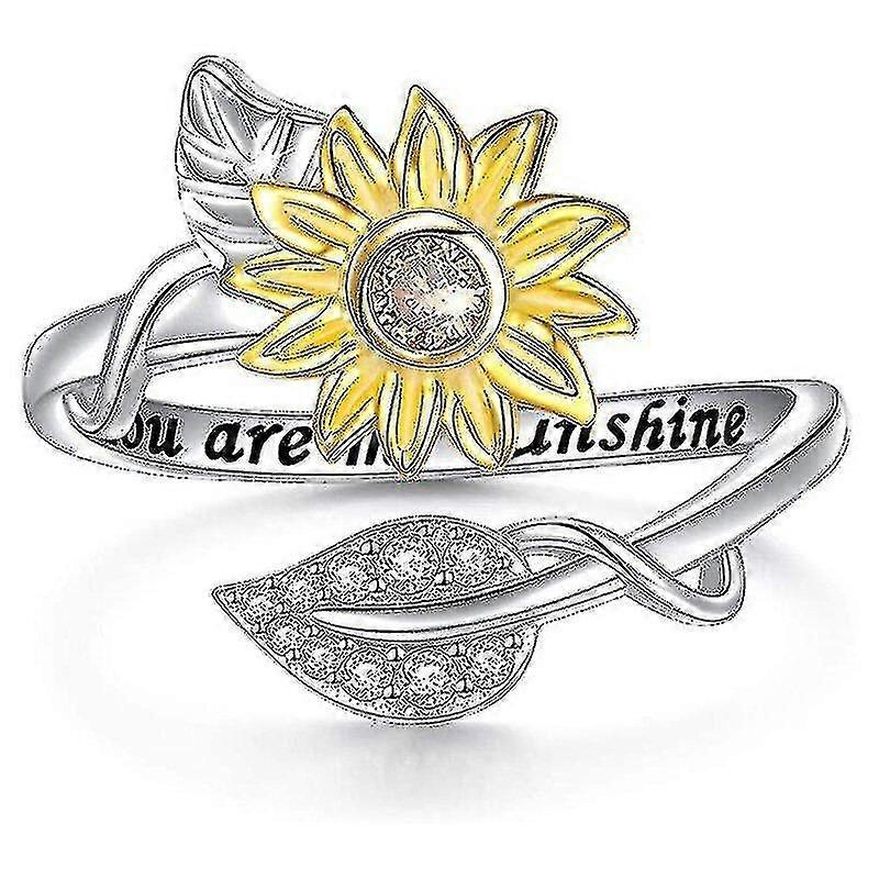 Silver You Are My Sunshine Sunflower Crystal Ring