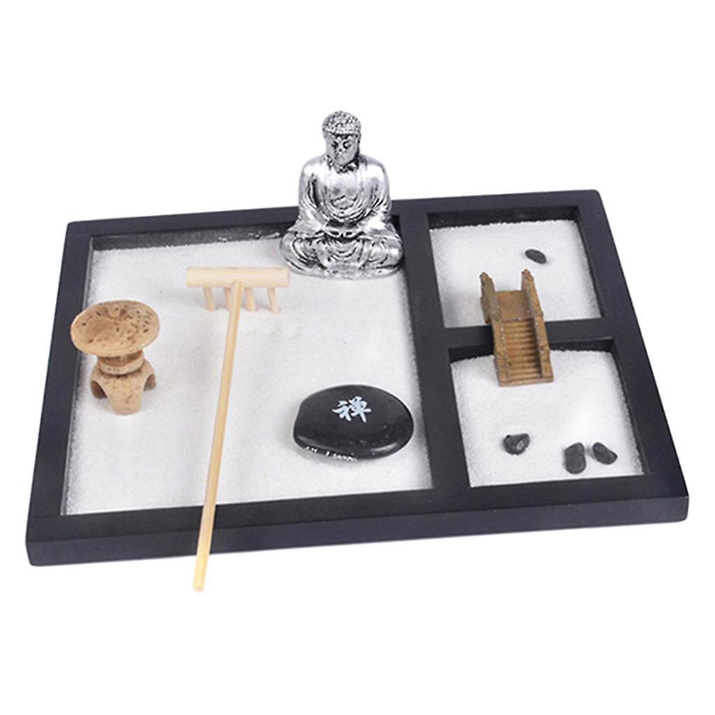 Silver Buddha Zen Sandbox Meditation Sand Box Garden Tabletop Decor